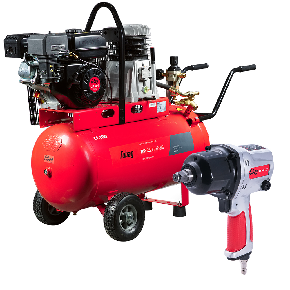 Отзывы о Бензиновый ременной одноступенчатый компрессор FUBAG BP 3600/100 + Пневмогайковерт ударный FUBAG IW900 1/2 дюйма