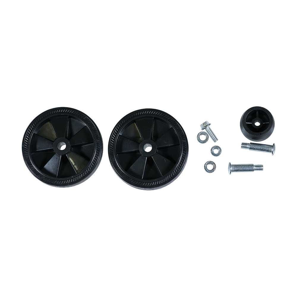 резиновая ножка, крепёж для ножки, 2 колеса с резиновым ободом 115 мм х 25 мм, 2 крепежа для колёс, инструкция |