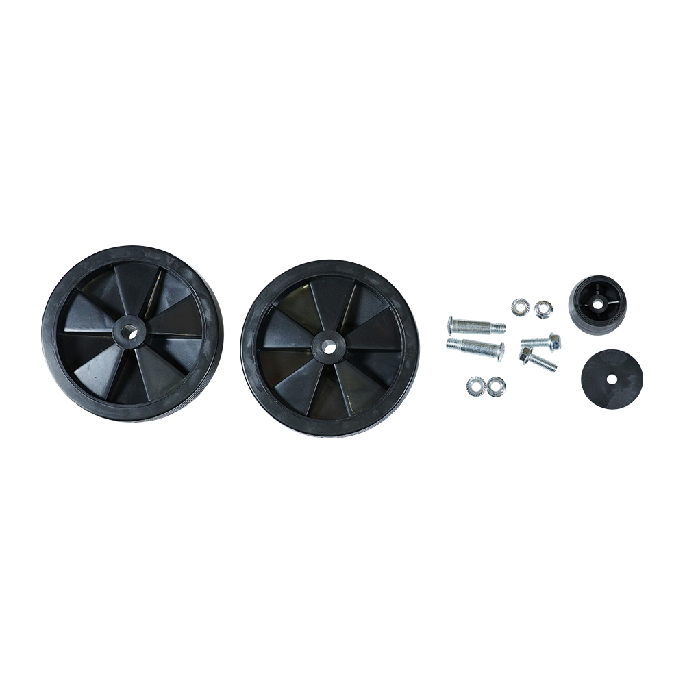 2 резиновые ножки, 2 крепежа для ножек, 2 колеса с резиновым ободом 150 мм х 28 мм, 2 крепежа для колёс, инструкция |