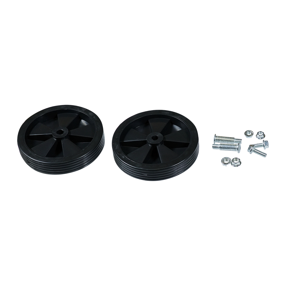 резиновая ножка, крепёж для ножки, 2 колеса с резиновым ободом 150 мм x 28 мм, 2 крепежа для колёс, инструкция |