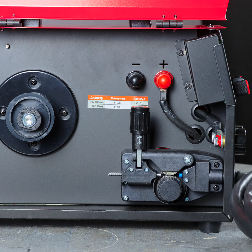 Аппарат имеет 3 синергетические программы под стальную проволоку сплошного сечения 0,8 мм и порошковую проволоку 0,8 - 0,9 мм.